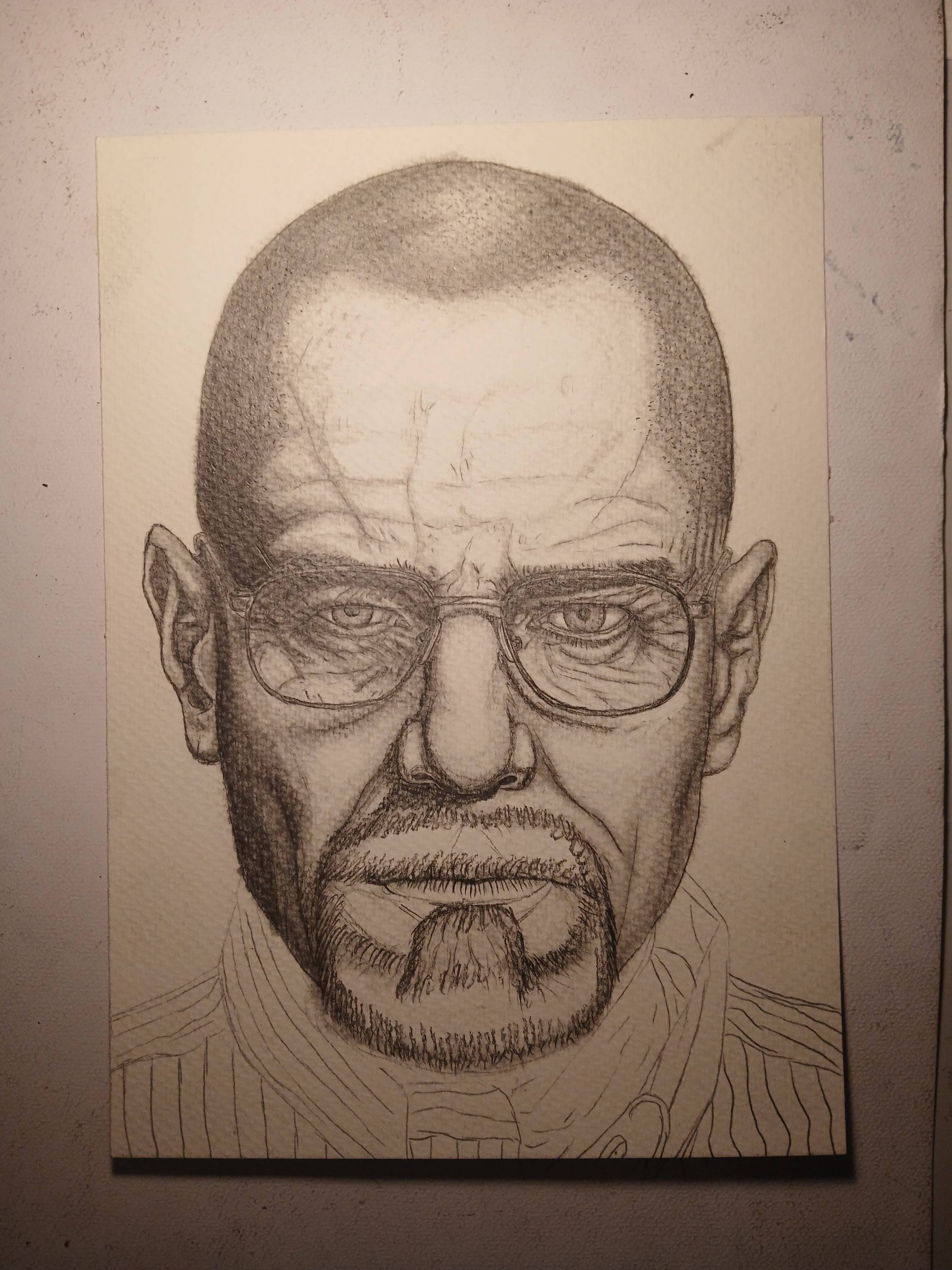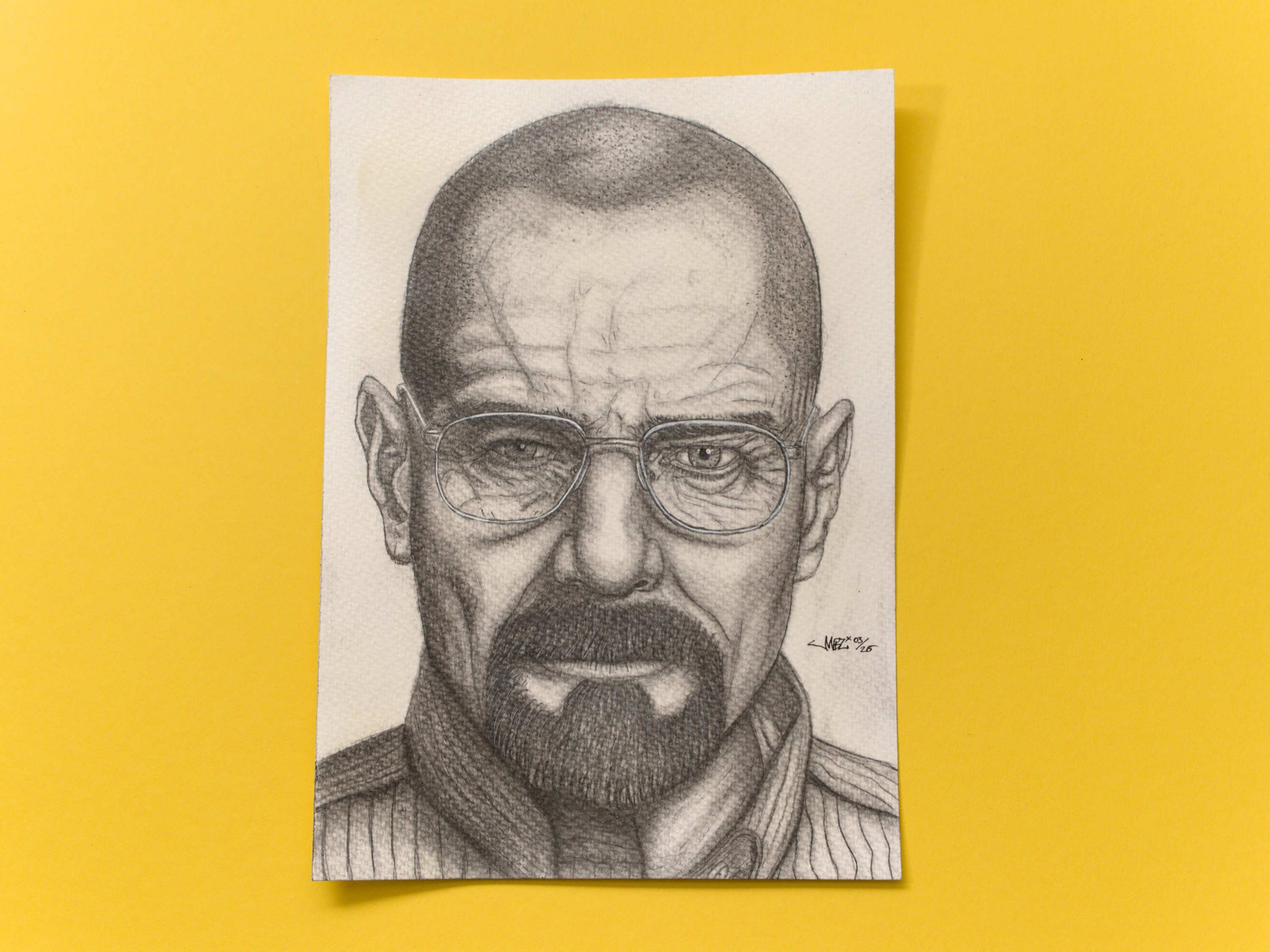 Handgemalte Bleistiftzeichnung „Walter White“ – realistische Kunst auf Premium-Papier, Einzelstück